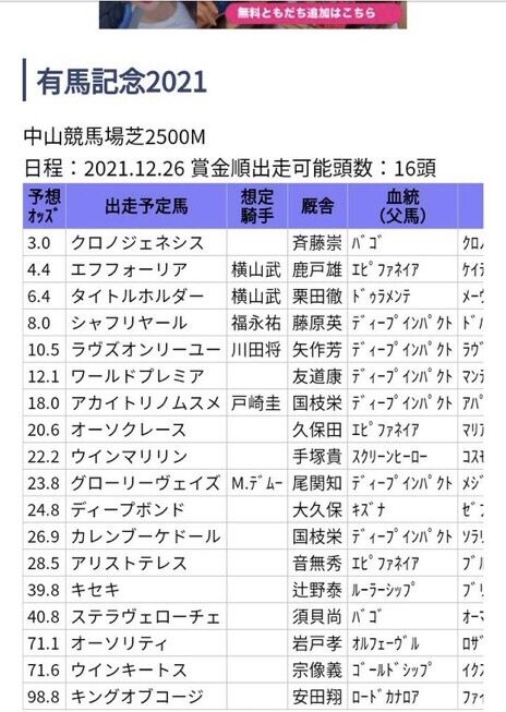 【競馬・予想】今年の有馬記念のメンツwwwwwwwwwwww