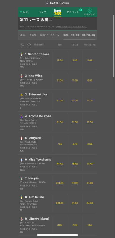 10倍切りそうな5番人気てどうなっとんねん…鞍上で切ってくれやみんな
