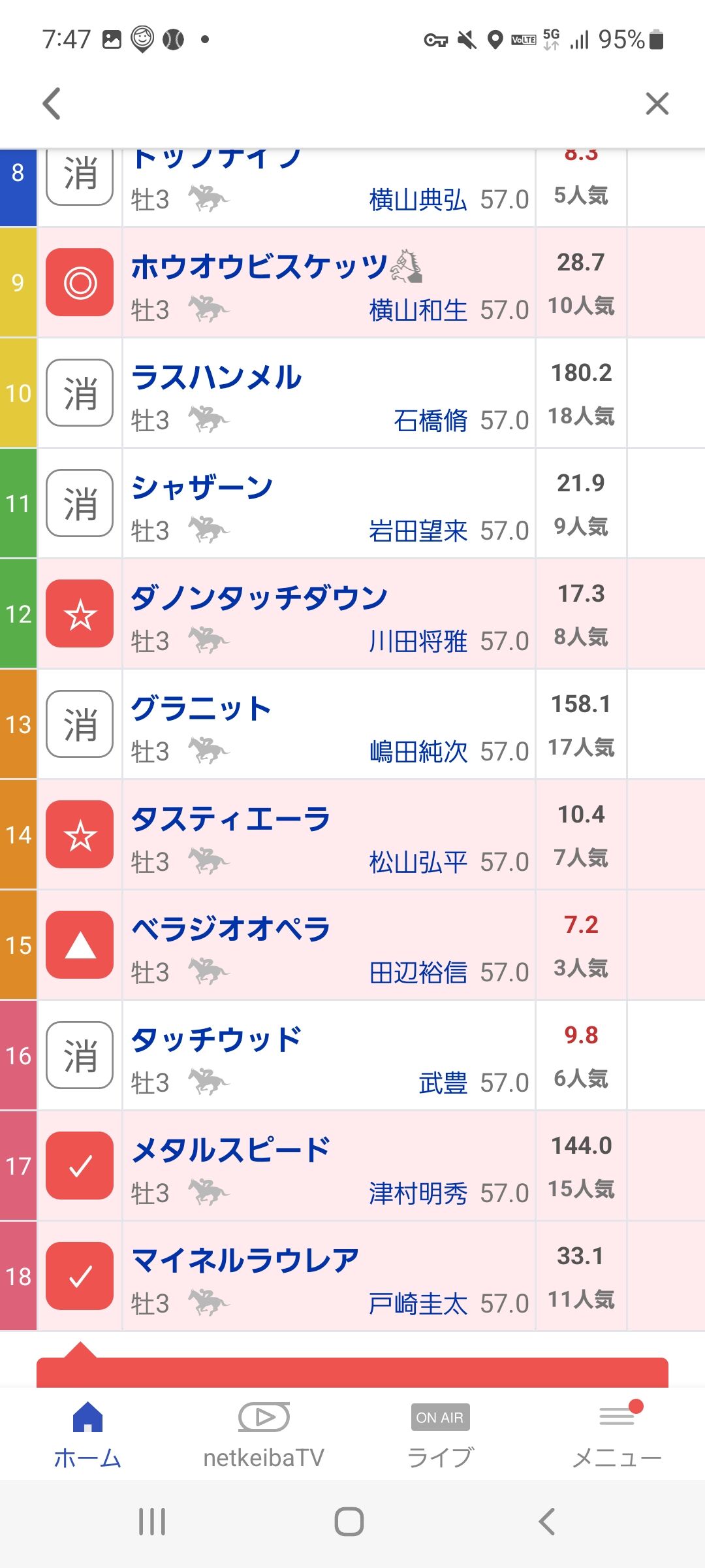 荒れ狙いでホウオウビスケッツ軸で買い目考えようか迷っとるわ
