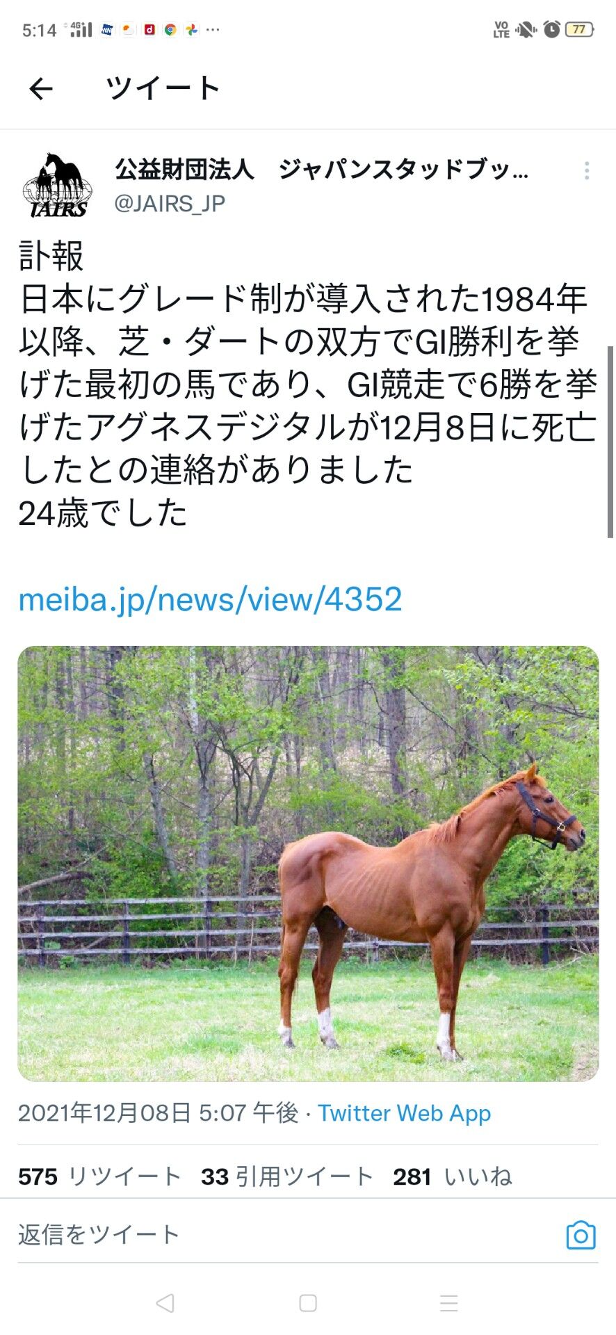好きだった馬が逝っちゃった