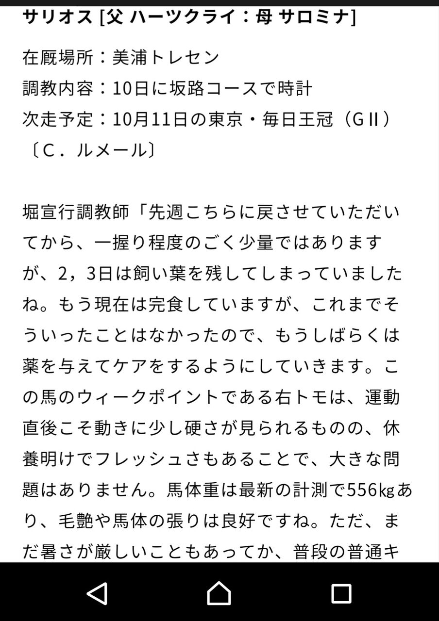 サリオスは毎日王冠→マイルCSだよ