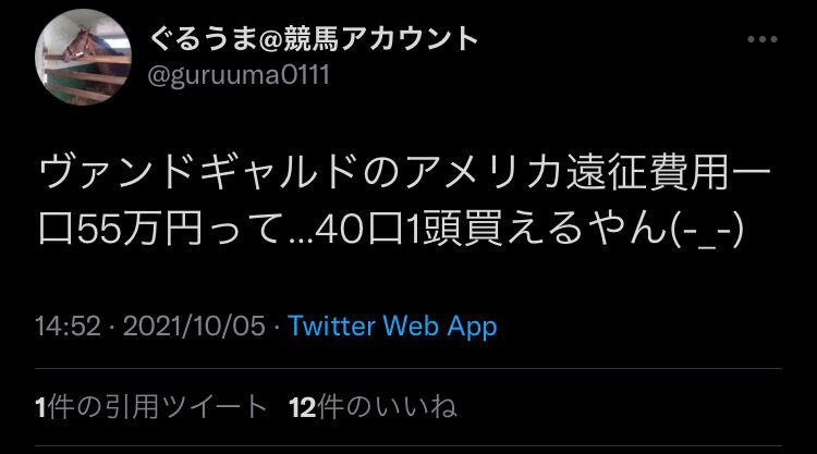 【競馬・Twitter】ヴァンドギャルドのBCマイル遠征費用、1口あたり55万円を会員が負担