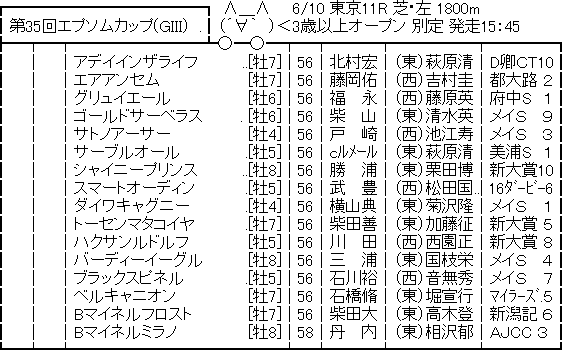 2018.06.07 馬券予想・データkeiba umanami 【競馬予想】[1]第35回 エプソムカップ(G3)/2018 ツイート シェア Google+ はてブ Pocket 67: 名無しさん@実況で競馬板アウト 2018/06/03(日) 18:39:22.25 ID:iB9TiUOF0 続きを読む Source: ☆うまなみ・競馬にゅーす速報 【競馬予想】[1]第35回 エプソムカップ(G3)/2018