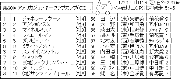 460: 名無しさん@実況で競馬板アウト 2019/01/18(金) 10:11:24.81 ID:1qK1c5bF0
