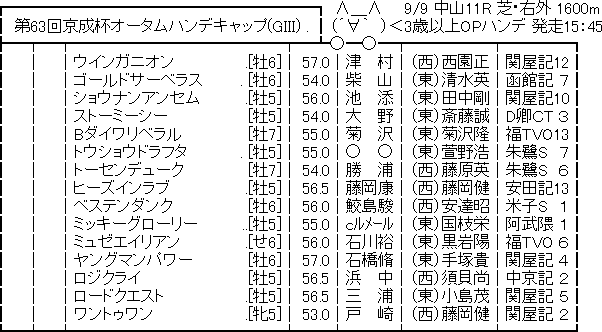 【競馬予想】[1]第63回 京成杯オータムハンデ(G3) /2018