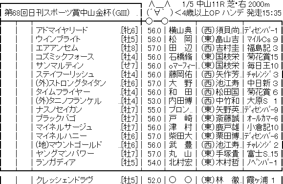 【競馬予想】[1]第68回中山金杯(G3) /2019