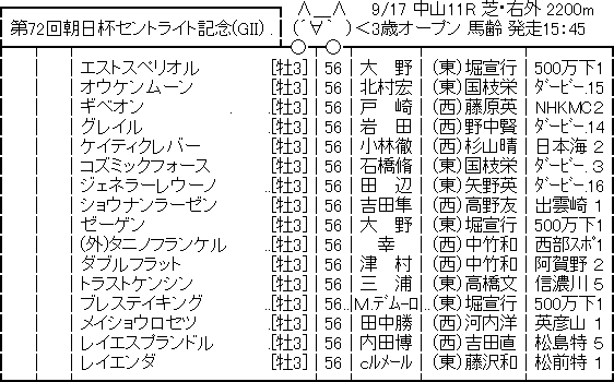 【競馬予想】[1]第72回 セントライト記念(G2)/2018