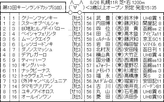 2018.08.25 馬券予想・データkeiba umanami 【競馬予想】[2]第13回 キーンランドカップ(G3) /2018 ツイート シェア Google+ はてブ Pocket 407: 名無しさん@実況で競馬板アウト 2018/08/24(金) 10:13:36.29 ID:rndpV/uU0 続きを読む Source: ☆うまなみ・競馬にゅーす速報 【競馬予想】[2]第13回 キーンランドカップ(G3) /2018