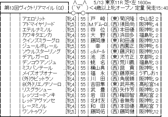 【競馬予想】[2]第13回 ヴィクトリアマイル(G1) /2018