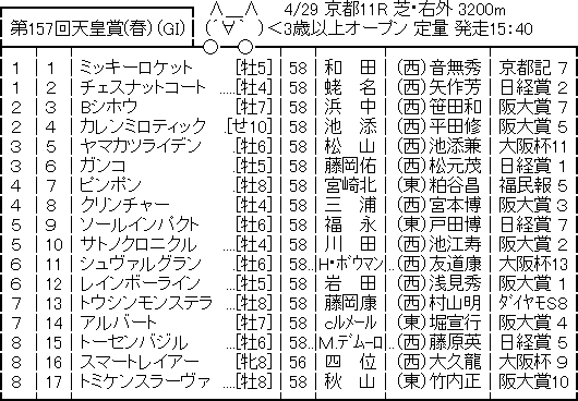 【競馬予想】[2]第157回 天皇賞(春)(G1)/2018