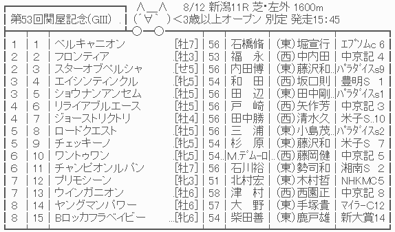 2018.08.11 馬券予想・データkeiba umanami 【競馬予想】[2]第53回 関屋記念(G3)/2018 ツイート シェア Google+ はてブ Pocket 1: 名無しさん@実況で競馬板アウト 2018/08/10(金) 23:58:14.79 ID:0OkOv0+50 続きを読む Source: ☆うまなみ・競馬にゅーす速報 【競馬予想】[2]第53回 関屋記念(G3)/2018