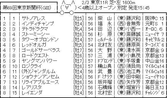 2019.02.02 馬券予想・データkeiba umanami 【競馬予想】[2]第69回 東京新聞杯(G3) /2019 ツイート シェア Google+ はてブ Pocket 98: 名無しさん@実況で競馬板アウト 2019/02/01(金) 10:10:29.00 ID:p2S+GURg0 続きを読む Source: ☆うまなみ・競馬にゅーす速報 【競馬予想】[2]第69回 東京新聞杯(G3) /2019