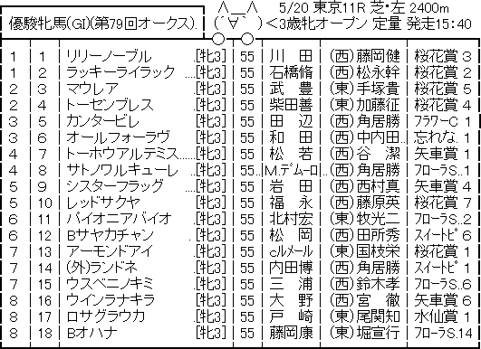 【競馬予想】[2]第79回 オークス(G1) /2018