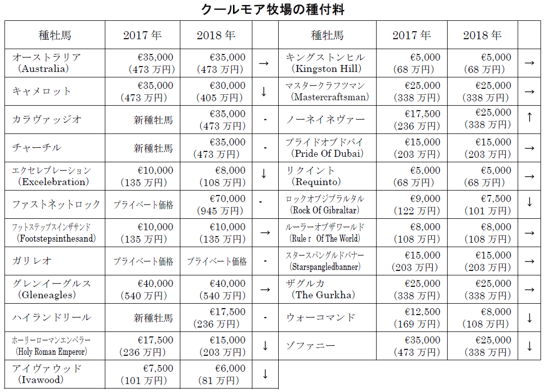 アメリカのアシュホードには何頭か飯いいのがいるが、アイルランドはガリレオが駆逐してそれ以外は微妙なのだしな