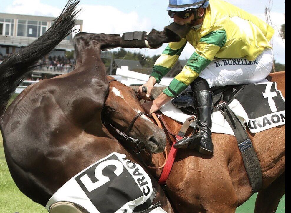 【競馬板】レース中にあの騎手が馬に噛みつかれた瞬間の画像、ヤバい・・・・・