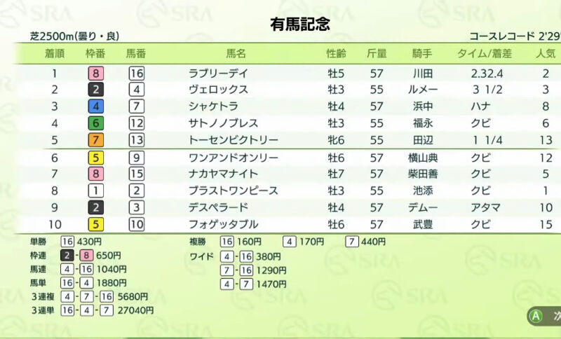 ダビスタ新作、メンバーが酷い年の有馬記念の再現度が高い