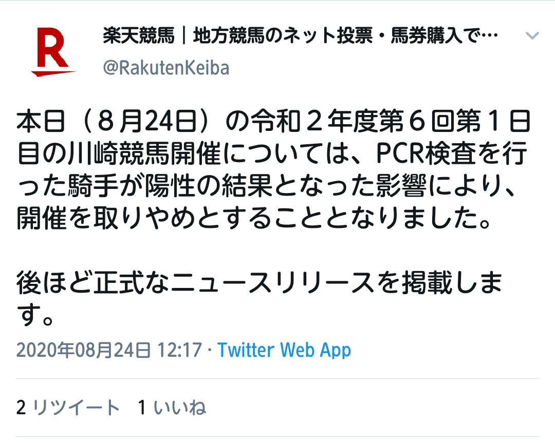 【緊急速報】川崎競馬中止…【詳細】