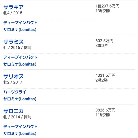 他はジャスタやブラックタイド、キタサン、カナロア、モーリスなどにも