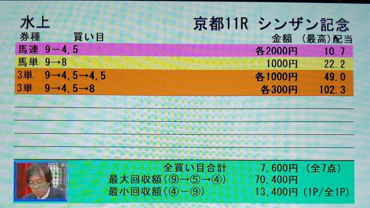 しかも今年のシンザン記念の予想が◎ルーツ、宝カバ、相手上位は ⑤オーマイダーリン、④タガノビューティ―。 押さえに ①サンクテュエール、⑥プリンスリターン。だったけど予想TVの買い目では①と⑥を完全に外して見事なワンツー決着!