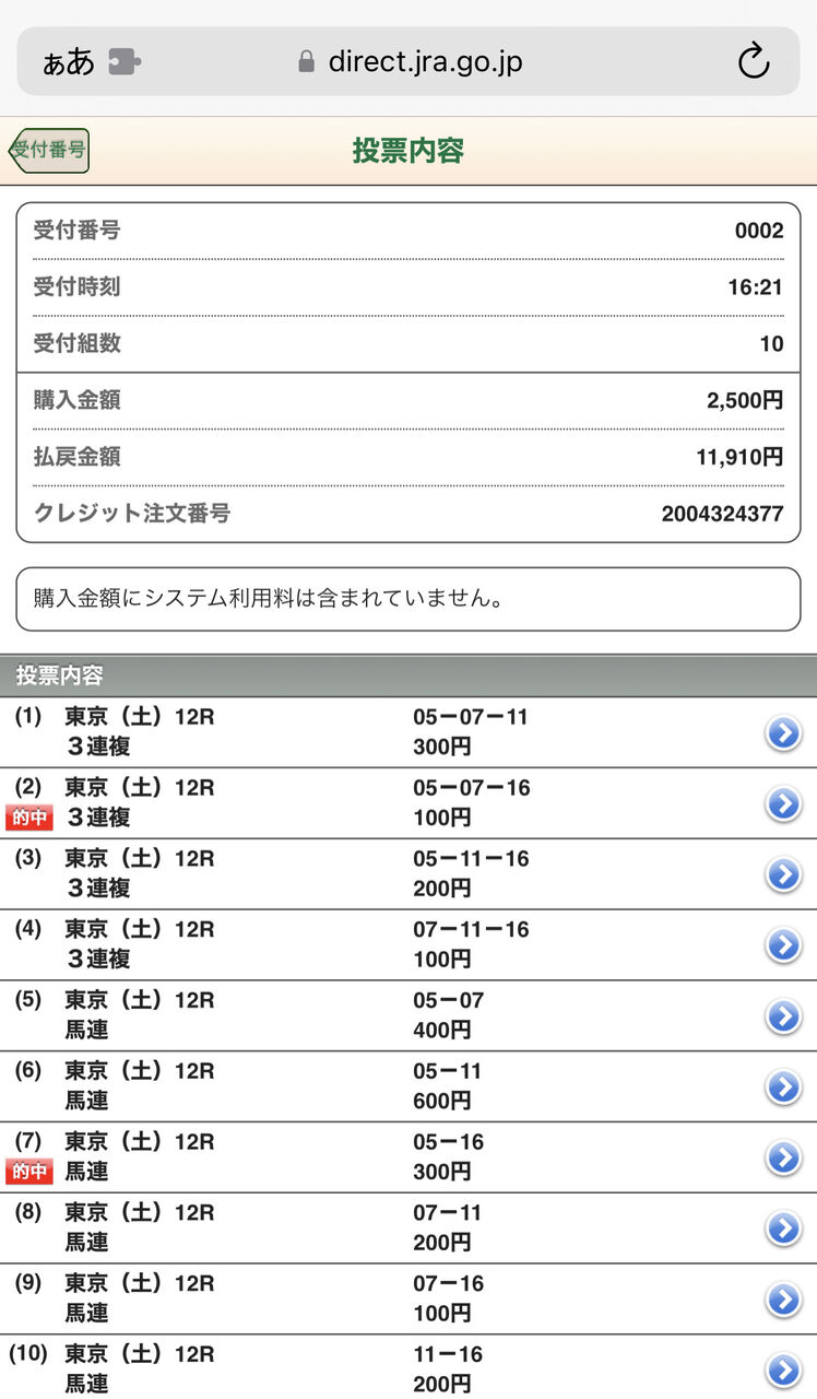 ビビって5-7-11のワイドBOXにするか迷ったけど勝負に出て良かった