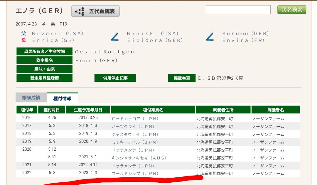 【謎報】独オークス馬エノラ、ゴールドシップに種付けされる