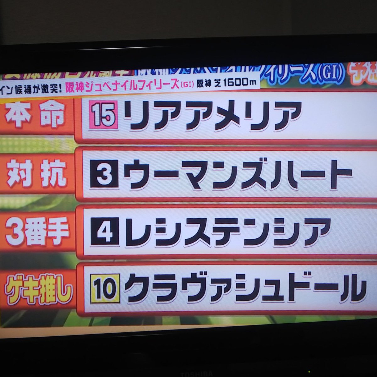 RT @KanenashiOpera_: アンカツ さんの阪神ジュベナイルフィリーズ(GⅠ)予想 本命 ⑮ リアアメリア ゲキ推し ⑩ クラヴァシュドール #うまンchu #阪神競馬場 #阪神ジュベナイルフィリーズ pic.twitter.com/zwWvCUGwAT