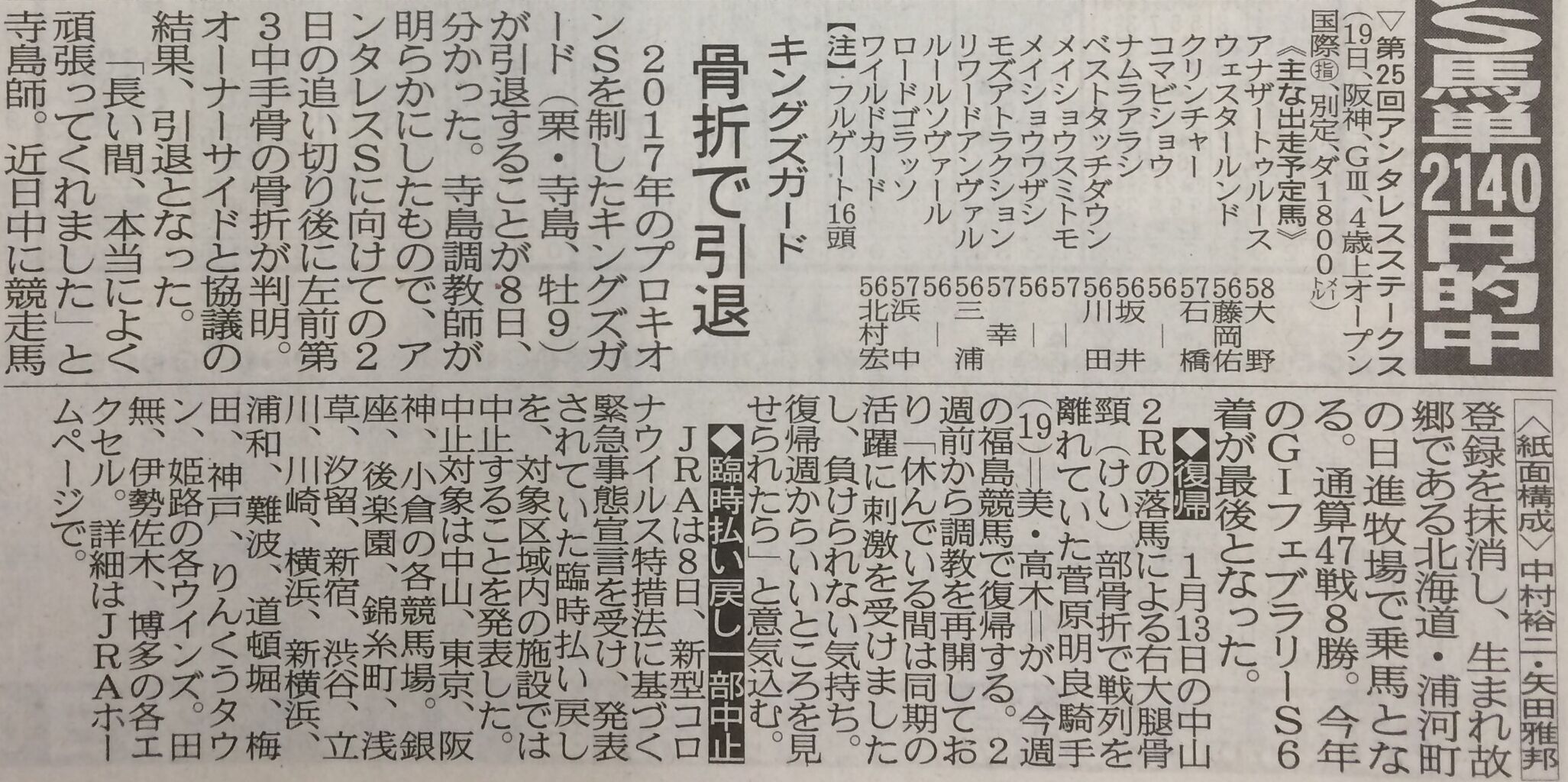 【速報】キングズガード、骨折で引退!寺島師コメント&今後については…【ネット反応】