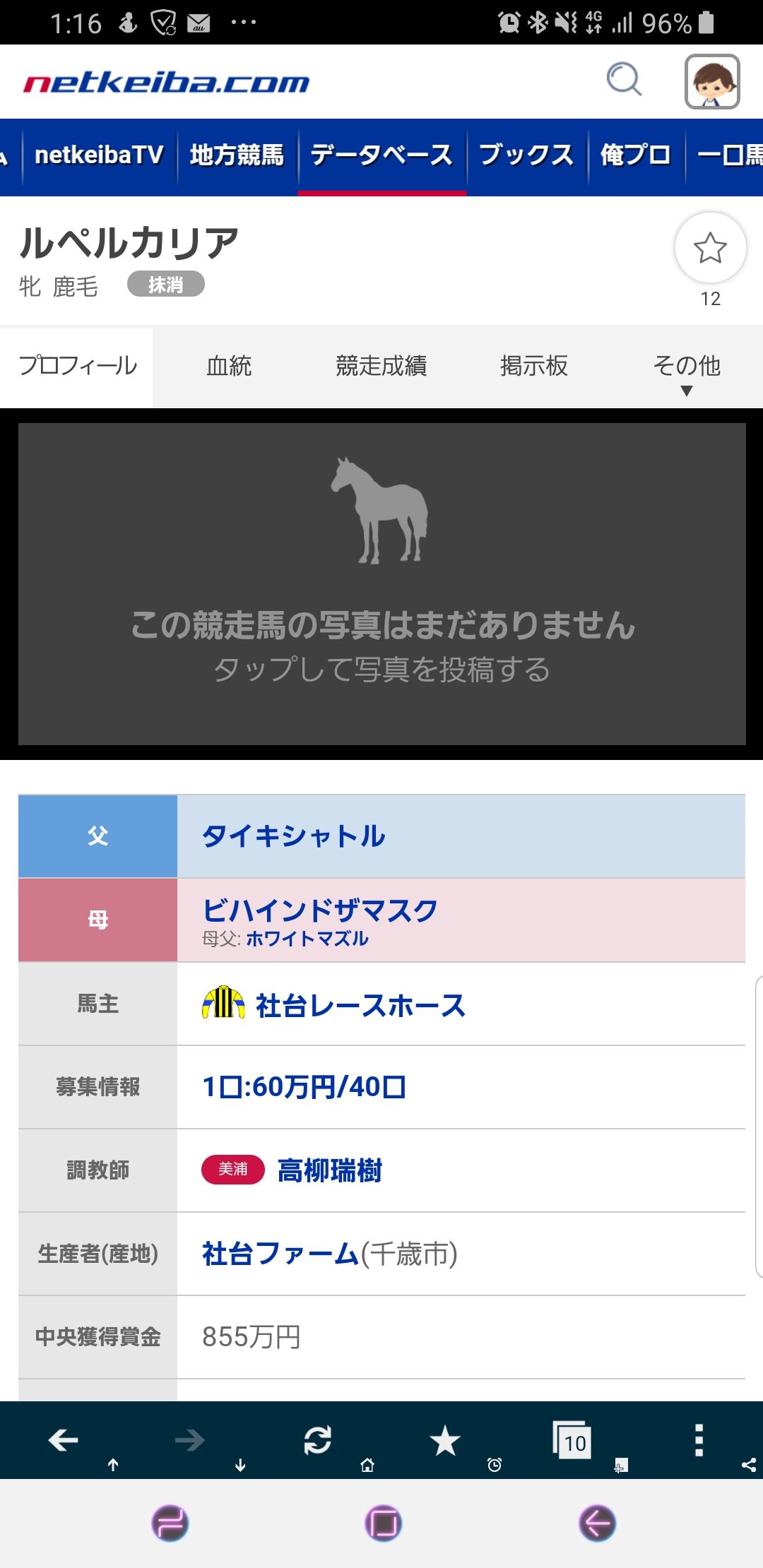 シーザリオの18(父モーリス)はルペルカーリアに決定。