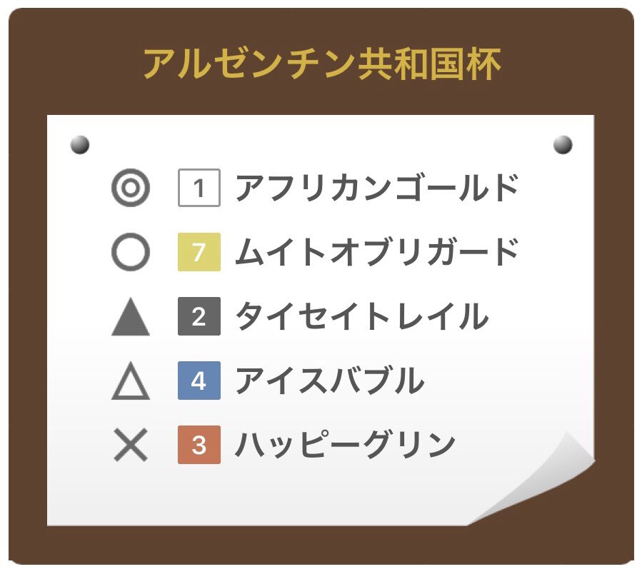 ちなみに、僕ちゃんのアルゼンチン共和国での本命は、アフリカンゴールドですよ。