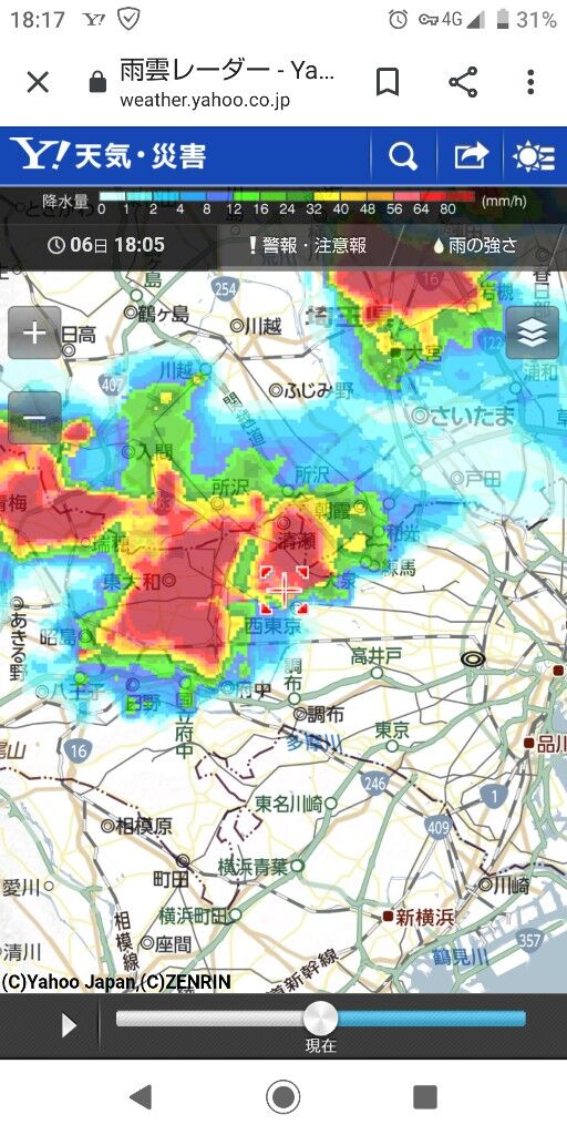 府中住みだが年に1度あるかどうかのどしゃ降りでわろた