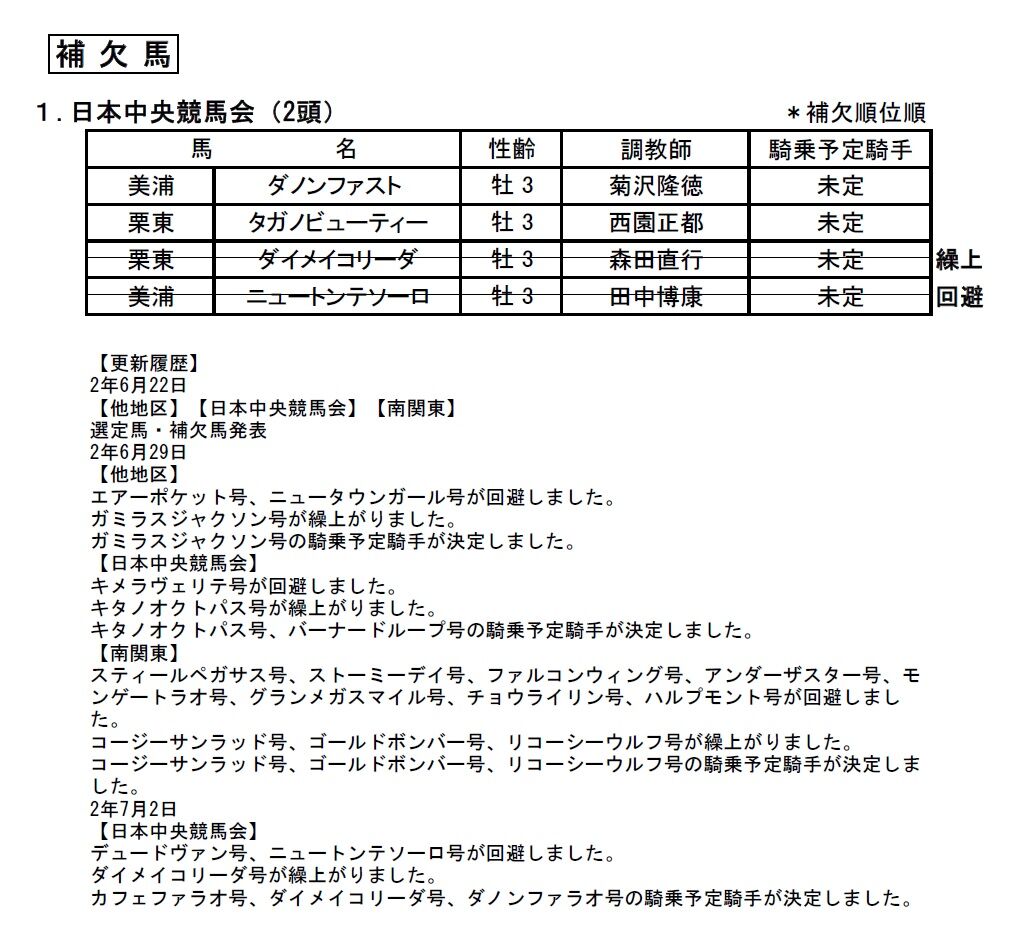 JRA所属出走予定馬 7頭