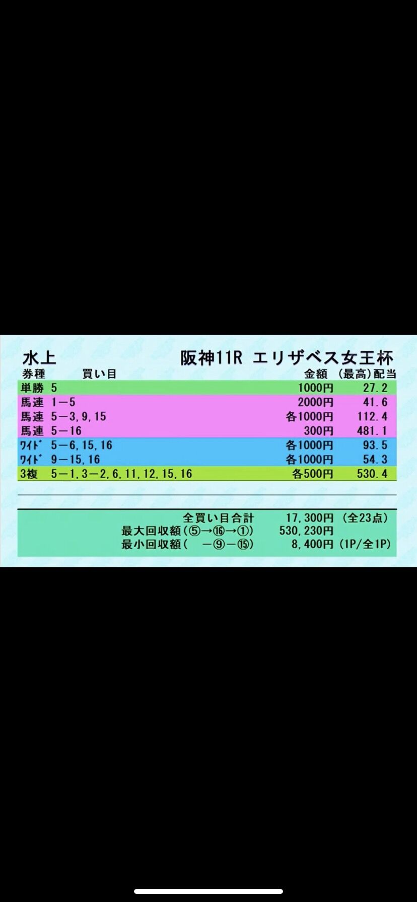 それでも17300円の買い目で