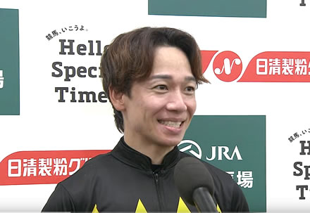 デビューした時から凄く力のある馬だなと思っていて、東京で重賞勝ちもしていますし、最後に脚を使える馬なので、そういった競馬を今日も心掛けましたが、しっかり伸びてくれました。まだまだ馬は成長できると思いますし、本当にこれからが楽しみです。(自分自身)久々にGIを勝たせていただきましたが、また勝てるようにしっかり頑張っていきたいと思います」