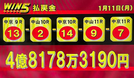 【WIN5】史上最高配当4億8178万3190円wwwwwww