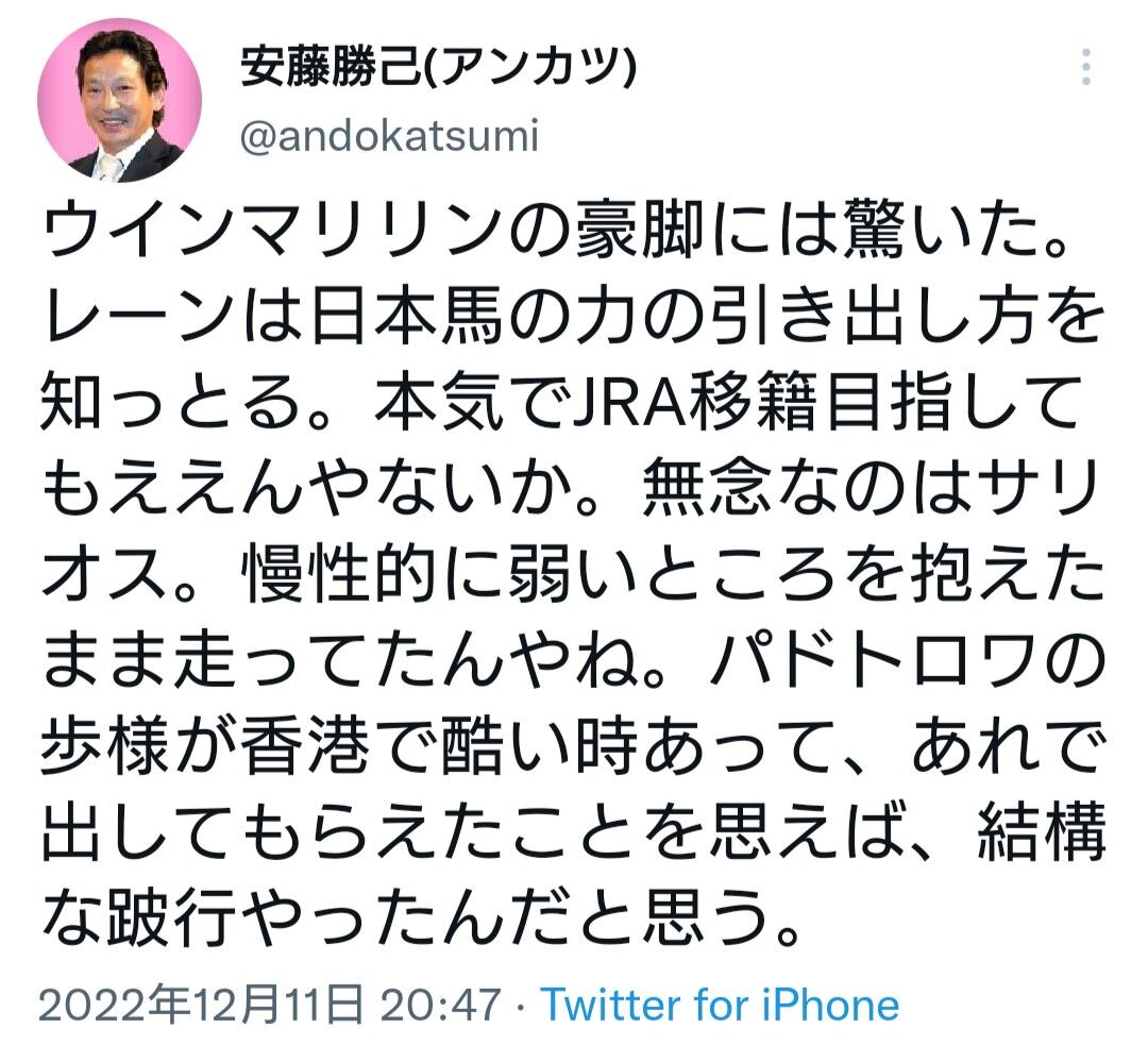 アンカツ「ウインマリリンに驚いた。」