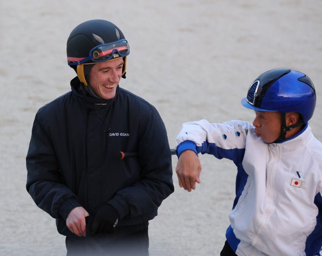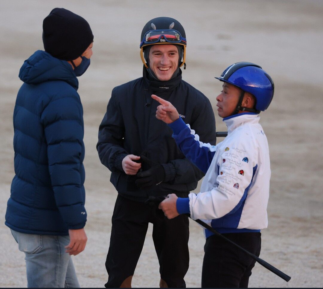 イーガン騎手の初勝利の撮影が1人ぼっち… と思っていたら突如あの騎手が現れてプラカードを持つ!