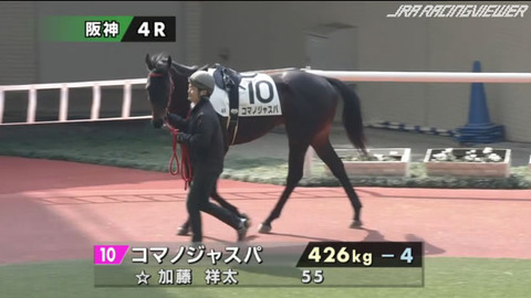 コマノジャスパ(牡3)1周約2000mの調教コースを約17周走行して出走取消