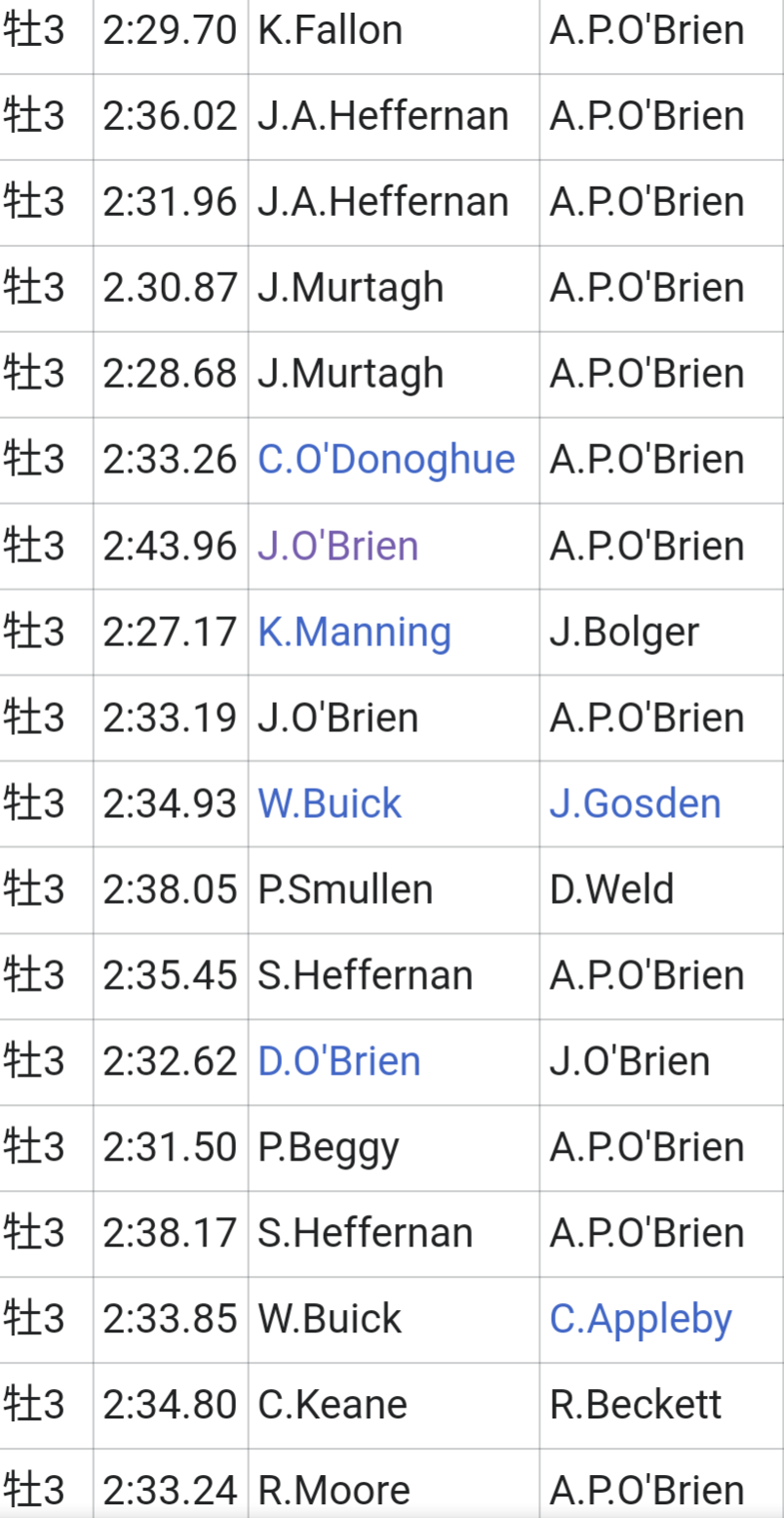 オブライエンはBCクラシック拘って挑みまくってるけどあそこの厩舎でダート重賞勝った馬ってUAEダービーで大差勝ちしたメンデルスゾーンくらいしかおらんイメージやが
