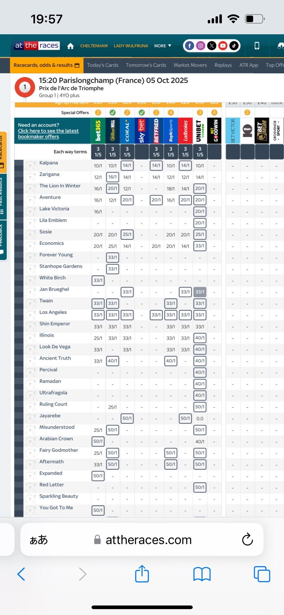 ブックメーカーの凱旋門賞にフォーエバーヤング現るwww