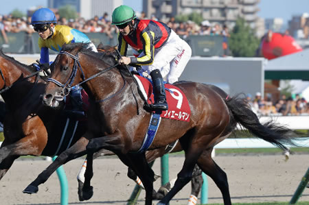 「いい競馬をしました。コースがきつく、距離も短かったし、エンジンがかかるのが遅かったが、直線は頑張りました。 後ろから冷静に走って、いい脚を使ってくれた。札幌は内がいいけど、今日は安全に乗った。一度使ってパワーアップするかもしれない。 3000メートルで勝ったけど、2400メートルはたぶんベストだと思う。一番の目標は次走(凱旋門賞)で、楽しみ」