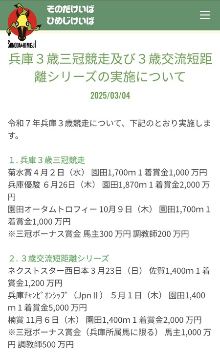 再来年までにJpnI昇格を目指す兵庫CS、1着賞金5000万に増額
