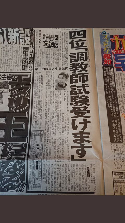 2018.09.19 馬券予想・データkeiba umanami 四位洋文「今年も調教師試験受けます」 ツイート シェア Google+ はてブ Pocket 1: 名無しさん@実況で競馬板アウト 2018/09/19(水) 09:31:50.98 ID:APCJPJpW0 続きを読む Source: ☆うまなみ・競馬にゅーす速報 四位洋文「今年も調教師試験受けます」