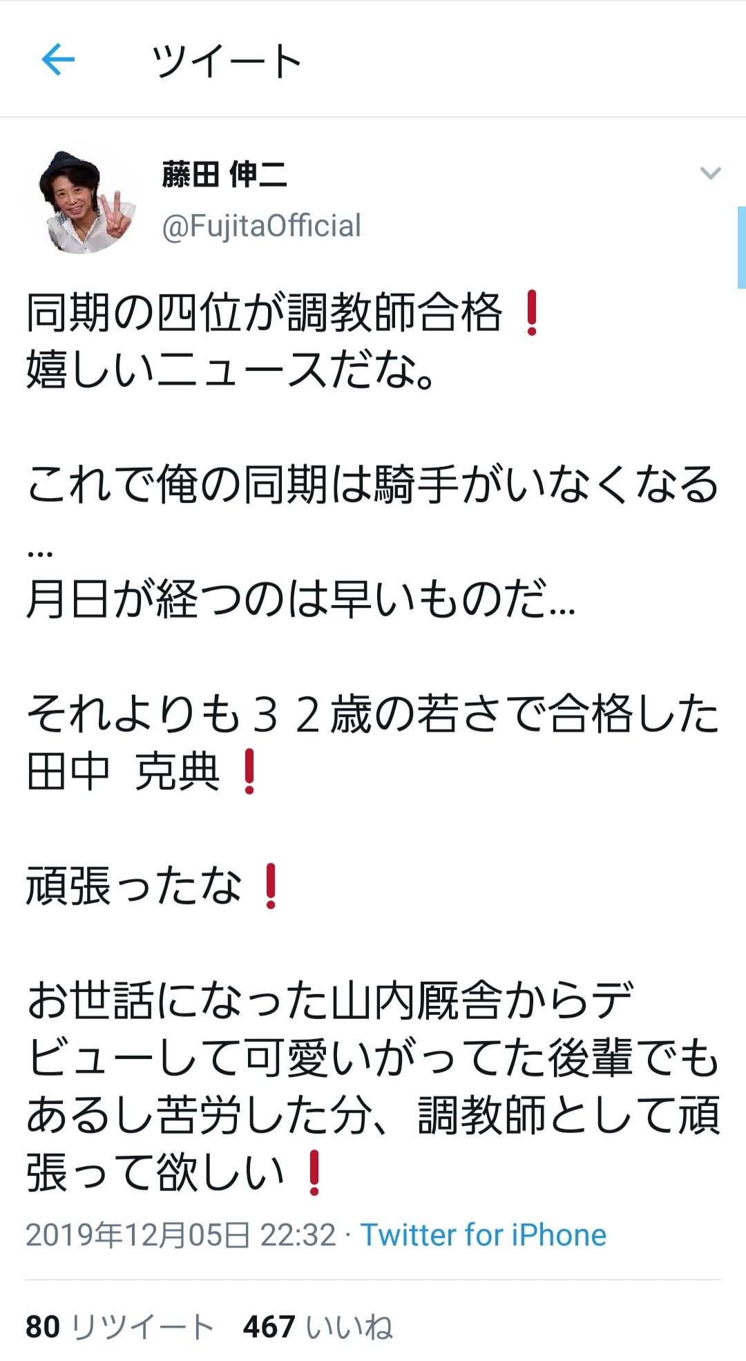 藤田伸二「同期の四位が調教師試験合格で嬉しい。それよりも32歳で合格した田中克典。頑張った」