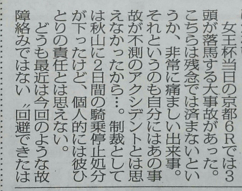 2018.11.19 馬券予想・データkeiba umanami 蛯名が落馬事故に警鐘!「安全面を確保した上で競うのが競馬」 ツイート シェア Google+ はてブ Pocket 1: 2018/11/19(月) 15:31:09.93 尚、和田に対しては無事に戻ってきてとは言わない模様 和田が関東騎手批判してたからかな?w 続きを読む Source: ☆うまなみ・競馬にゅーす速報 蛯名が落馬事故に警鐘!「安全面を確保した上で競うのが競馬」